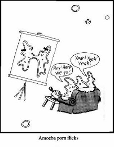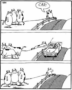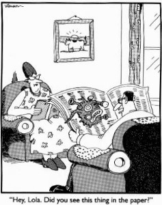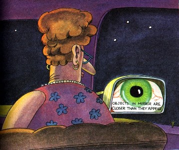 Gary Larson's The Far Side is strange but really funny too, everything in a different perspective