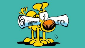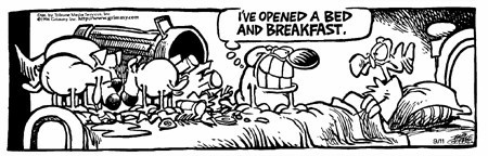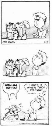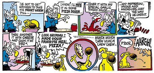 Grimmy is about the same as Garfield but it is a dog, and he is drawn a lot worse and lives with mother goose and a strange cat. But very funny.